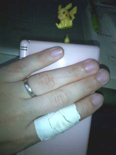 接骨院で「打撲です」とのこと、まー指が紫だったけど、曲がるし腫れてないので