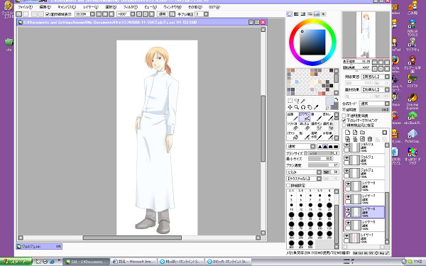 立ち絵の方は…下地が終わって塗りに入っているのですが(線画を修正しながら)