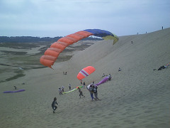 砂丘ではパラグライダーの教室らしきものをしていましたよ(右上)